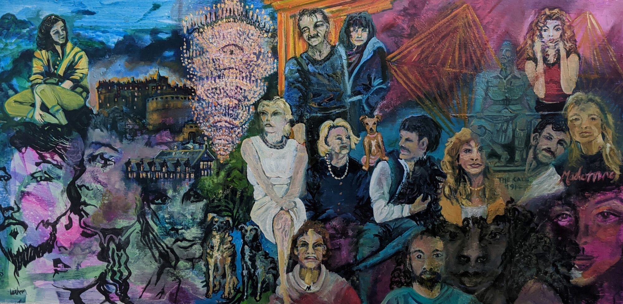 Then came Donna Summer, Madonna and Kate Bush, then Edinburgh Castle, the chandeliers of the George Street Assembly Rooms, the Forth Rail Bridge and the heroic statue commemorating fallen soldiers of the many wars we have tangled in. Overlaying all of this, eleven portraits of friends and family and three dogs.